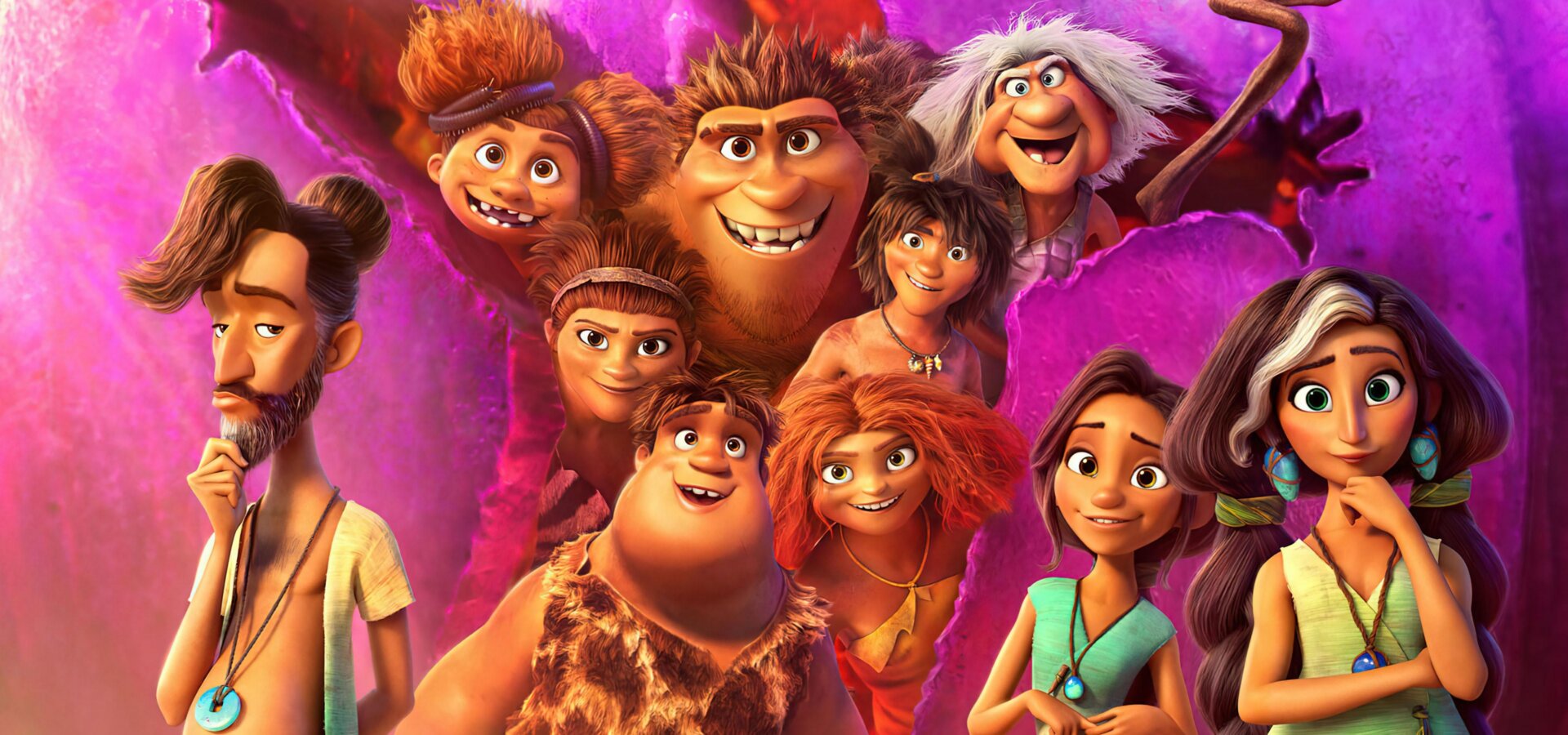 Za to, že jsou Croodsovi trochu zaostalí, může nepochybně táta Grug. Ten se držel hesla „Všude dobře, v jeskyni nejlíp“ a bránil jim tak v osobním rozvoji. Když konečně překonali strach a Grugův odpor, zjistili Croodsovi, že svět může být báječným místem k životu, když máte kliku a narazíte na nějaký ten úrodný a bezpečný plácek. Po mnoha našlapaných kilometrech a řadě příjemných i nepříjemných zážitků Croodsovi takové místo našli. Mělo jen jednu nevýhodu. Žila na něm jiná rodina – Lepšíkovi. Už jejich příjmení napovídá, že jsou na trochu jiné civilizační úrovni než viditelně zaostalí Croodsovi. Vynalézavý Fíla Lepšík, hlava rodiny, zajistil svým blízkým komfort, o jakém se Croodsovým ani nesnilo. I díky tomu je jeho rodina milá, vlídná a přátelská a plně připravená přivítat Croodsovy ve svém stromovém domě, kde mají kromě mnoha vymožeností i pravěkého předchůdce televize. Z historie víme, že když na sebe narazí různě vyspělé civilizace, nevyhnutelně to mezi nimi začne skřípat. A skřípe to i mezi Croodsovými a Lepšíkovými a je to slyšet na míle daleko. To skřípání dosáhne to až za vysokou zeď, kterou Lepšíkovi vybudovali, aby se ochránili před nebezpečím, které tam číhá. Jenže žádnou zeď nepostavíte tak, aby byla nepřekonatelná, a tak je dost možné, že se hrubá síla neotesaných Croodsů ještě bude náramně hodit.